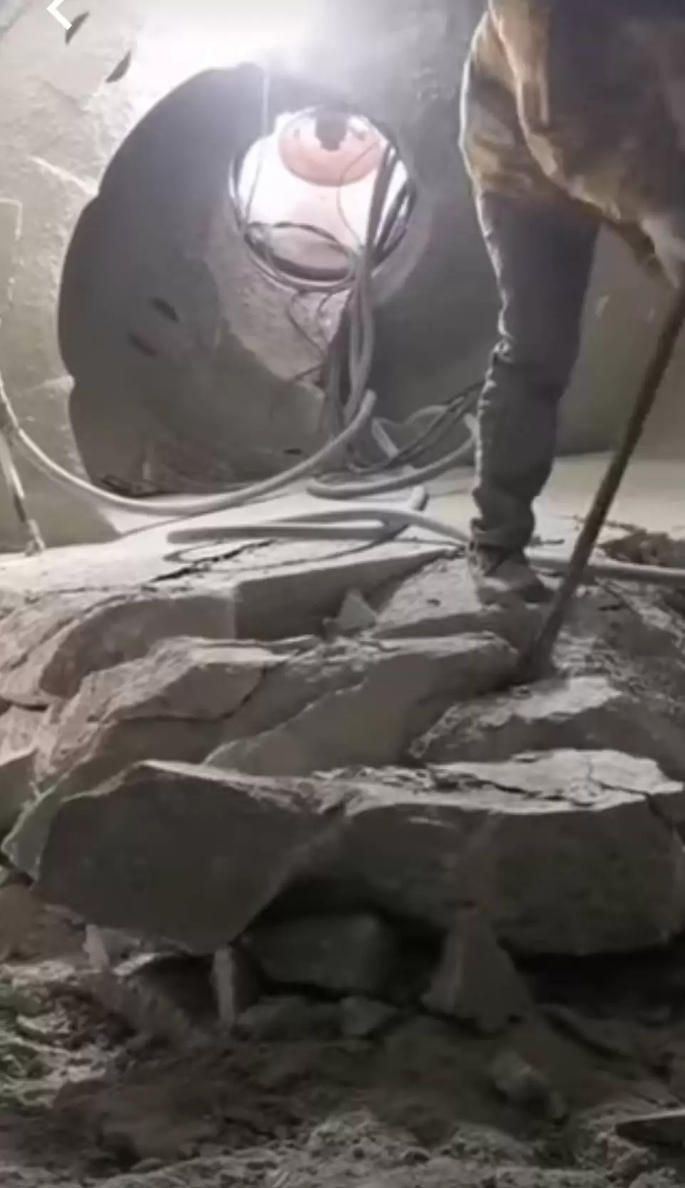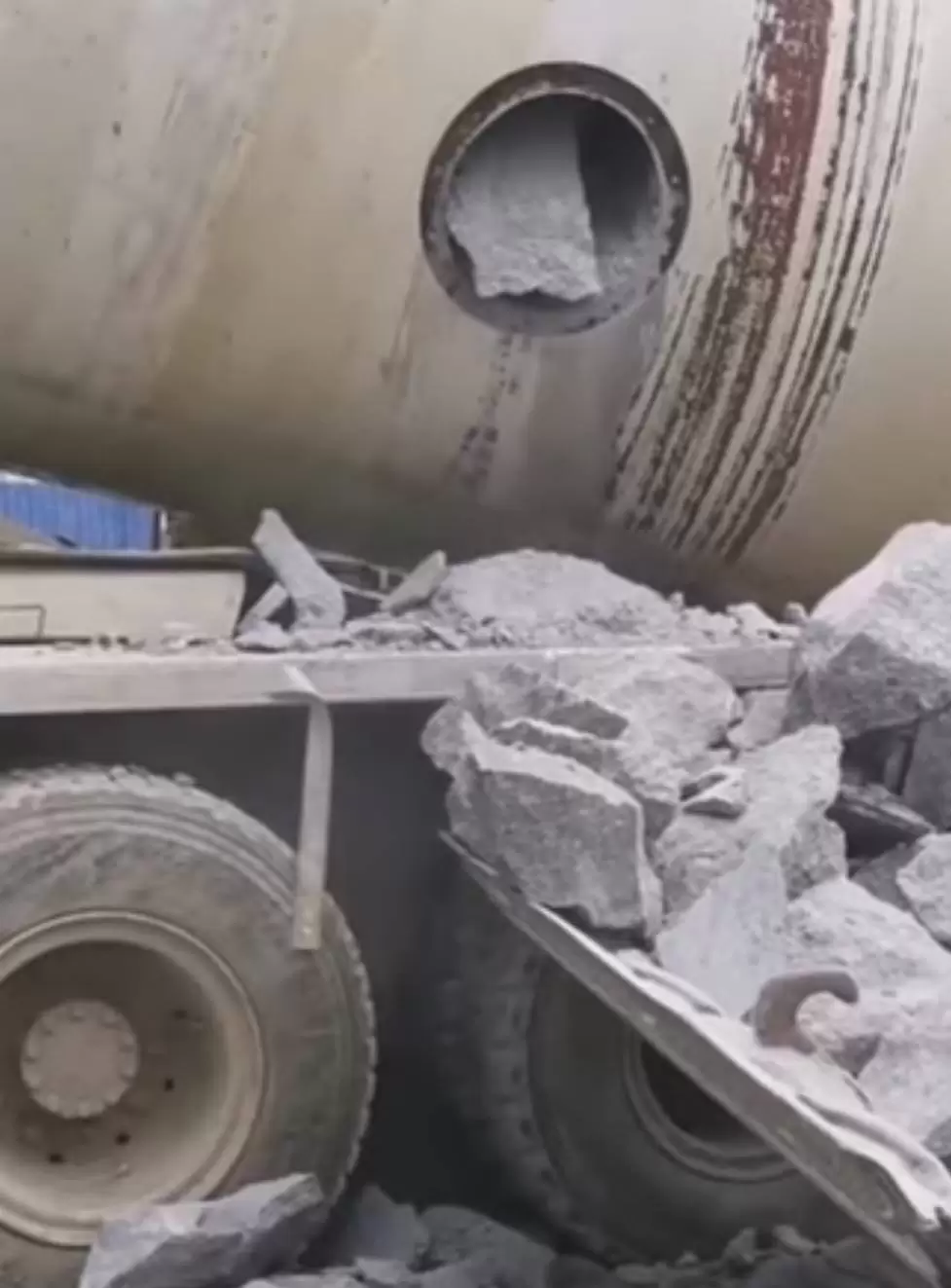 해당부위의 용도는 바로 레미콘 통돌이 내부의 시멘트가 굳어서 제기능을 못하게 되면, 해당 부위를 깨부수고 사람이 직접 들어가 작업을 하기 위해서라고 합니다. 이미 통돌이가 제대로 작동하지 않는 상태라면 내부는 시멘트가 다 굳은 상태라고 하는데요, 이렇게 구멍을 깨부수고 들어가 내부에 남은 굳은 시멘트를 구멍을 통해 배출해내는 것입니다.